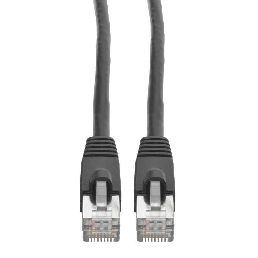Snagless RJ45 Male Connectors Add Extra Protection During Installation The RJ45 connectors' snagless design protects the locking tabs from being damaged or broken off during installation. The ends are shielded to minimize near-end crosstalk (NEXT) levels. Integral strain relief gives the N262-035-BK extra flexibility, reduces stress, and helps the cable move freely without cracking or breaking loose from the connector.