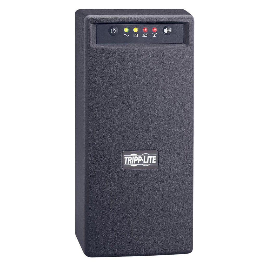 Tripp Lite's OMNIVS1000 line interactive UPS system offers voltage regulation, surge suppression and long lasting battery support for personal computers, internetworking equipment and other sensitive electronics. Internal UPS circuits support entry level PC systems for up to 60 minutes during power failures so that connected equipment can be shut down without data loss. Automatic Voltage Regulation (AVR) circuits regulate brownouts as low as 89 volts back to usable levels without using battery power. Offers complete desktop power protection in an attractive black tower configuration. Includes 6 battery supported outlets for computer, monitor and one vital system peripheral, plus 2 additional surge suppression-only outlets for printers and other system accessories not requiring battery support. USB port enables optional unattended system shutdown without data loss in the case of extended power failure, USB cable included. Built-in RJ45 TEL/Ethernet suppression jacks protect modem, fax machine, cordless phone or other peripheral with a standard single-line tel/DSL or data line connection. Built-in audible alarm and 4 front panel LEDs indicate line power status, battery power status, battery low/replace status and overload. 1000VA/500 watt power handling ability supports entry-level PCs, network workstations, point-of-sale equipment, small business phone systems, audio/video equipment and home theater systems. Offers 3.5 minutes battery runtime with a full load of 1000VA/500 watts and 14 minutes with a half load of 500VA/250 watts. Supports battery replacement via built-in access panel. $200,000 Ultimate Lifetime Insurance (U.S., Canada, and Puerto Rico only). - OMNIVS1000 Uninterruptible Power Supply offers voltage regulation, surge suppression and long lasting battery support - Supports entry level PCs up to 60 minutes during blackouts to enable shutdown without data loss - Regulates brownouts as low as 89 volts back to usable levels without using battery power - 6 UPS battery supported outlets, plus 2 additional surge suppression-only outlets - USB port and cable enables unattended shutdown in the case of extended power failure - HID-compliant USB port also enables integration with built-in power management and auto shutdown features of Windows and Mac OS X - Built-in RJ45 TEL/Ethernet suppression jacks protect modem, fax machine, cordless phone or other peripheral with a standard single-line tel/DSL or data line connection - Audible alarm and 4 front panel LEDs offer complete UPS and line power status information - 1000VA/500 watt power handling ability supports a variety of sensitive electronic equipment - 3.5 minutes full load runtime (1000VA/500 watts), 14 minutes half load runtime (500VA/250 watts) - Supports battery replacement via built-in access panel - Optional PDUB15 bypass PDU enables hot-swappable UPS replacement with no disruption to connected equipment - Short circuit protection in AC and battery mode - $200,000 Ultimate Lifetime Insurance (U.S., Canada, and Puerto Rico only) - This product is ENERGY STAR qualified for its ability to save customers money while helping to protect the environment