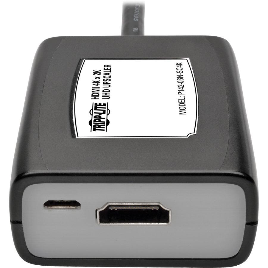 Tripp Lite P142-06N-SC4K HDMI 4K x 2K UHD Upscaler @ 24 Hz, TAA. Connector 1: HDMI, Connector 2: HDMI, Connector 1 gender: Male. Sustainability certificates: RoHS. Quantity per pack: 1 pc(s), Package width: 116.8 mm, Package depth: 152.4 mm. Master (outer) case width: 342.9 mm, Master (outer) case length: 163.1 mm, Master (outer) case height: 135.9 mm