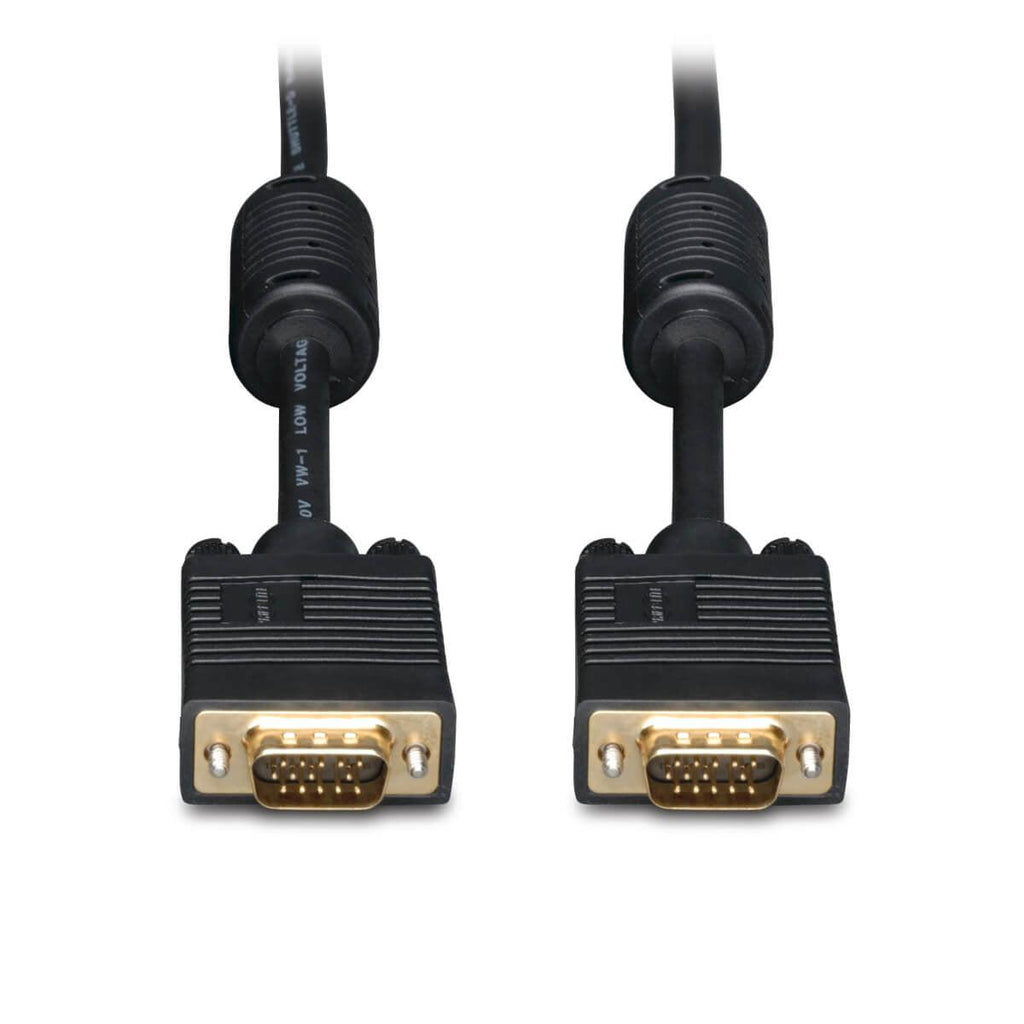 Allows Connection Between VGA-Enabled Computer and Monitor Up to 6 ft. Supports video resolutions up to 2048 x 1536, including 1080p Made from mini-coaxial (RGB) and paired video wire Foil and braid shielding protects against EMI/RFI line noise that can distort or destroy data Molded gold-plated HD15 male connectors and contacts provide maximum conductivity and minimize data loss Integral strain relief protects cable and connectors from stress and cracking Rugged PVC jacket designed for long life