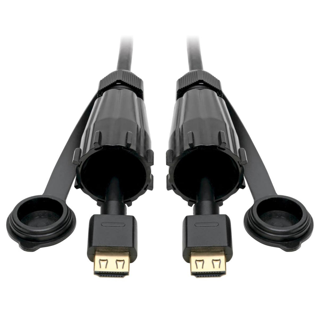 Industrial-Grade HDMI Cable Recommended for Outdoor or Harsh Indoor Environments The industrial-grade P569-012-IND2 (M/M) connects high-speed digital audio/video and Ethernet components in outdoor applications and other areas where protection from harsh elements is essential. The cable and male HDMI connectors are designed to withstand dust, debris and moisture that could threaten your infrastructure. This rugged cable is ideal for industrial areas, such as factories and warehouses, and unforgiving outdoor installations, including malls, bus stops and stadiums. For best performance, use the cable with a Tripp Lite industrial coupler, surface mount box and/or face plate. Check the web manual for a list of products that can be used.