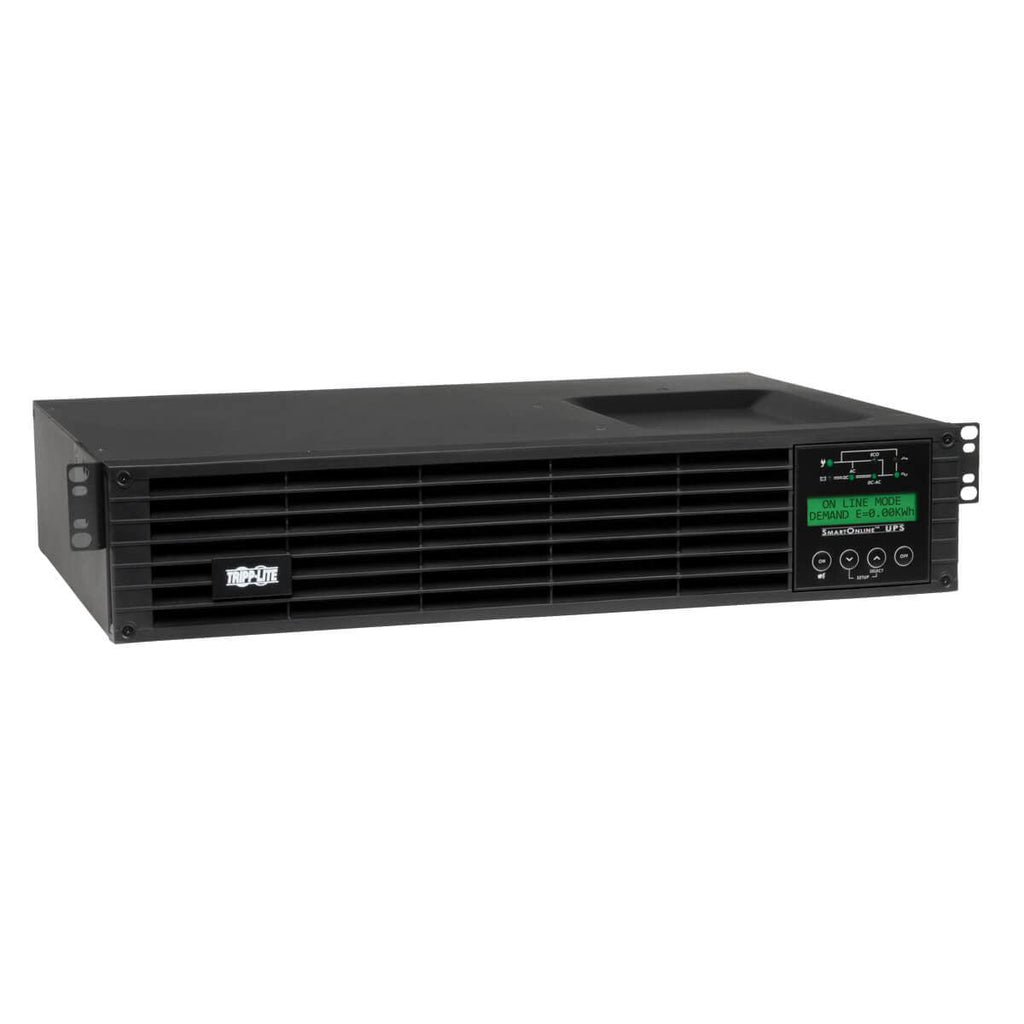 Tripp Lite SmartOnline 100-127V 750VA 675W On-Line Double-Conversion UPS, Extended Run, SNMP, Webcard, 2U Rack/Tower, LCD display, USB, DB9 Serial. UPS topology: Double-conversion (Online), Output power capacity: 0.75 kVA, Output power: 675 W. AC outlet types: NEMA 5–15R, AC outlets quantity: 6 AC outlet(s). Typical backup time at full load: 4.3 min, Typical backup time at half load: 13.9 min, Battery recharge time: 3 h. Form factor: Rackmount/Tower, Product colour: Black, Rack capacity: 2U. Width: 444.5 mm, Depth: 317.5 mm, Height: 88.9 mm