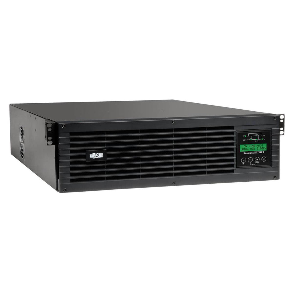 The SU3000RTXLCD3N SmartOnline® 120V 3kVA 2.7kW On-Line Double-Conversion UPS provides battery backup and AC power protection against blackouts, brownouts, power surges and line noise that can damage electronics or destroy data. It converts AC input to DC power, and then converts DC to fully regulated sine wave AC output with +/-2% voltage regulation in online and battery modes.