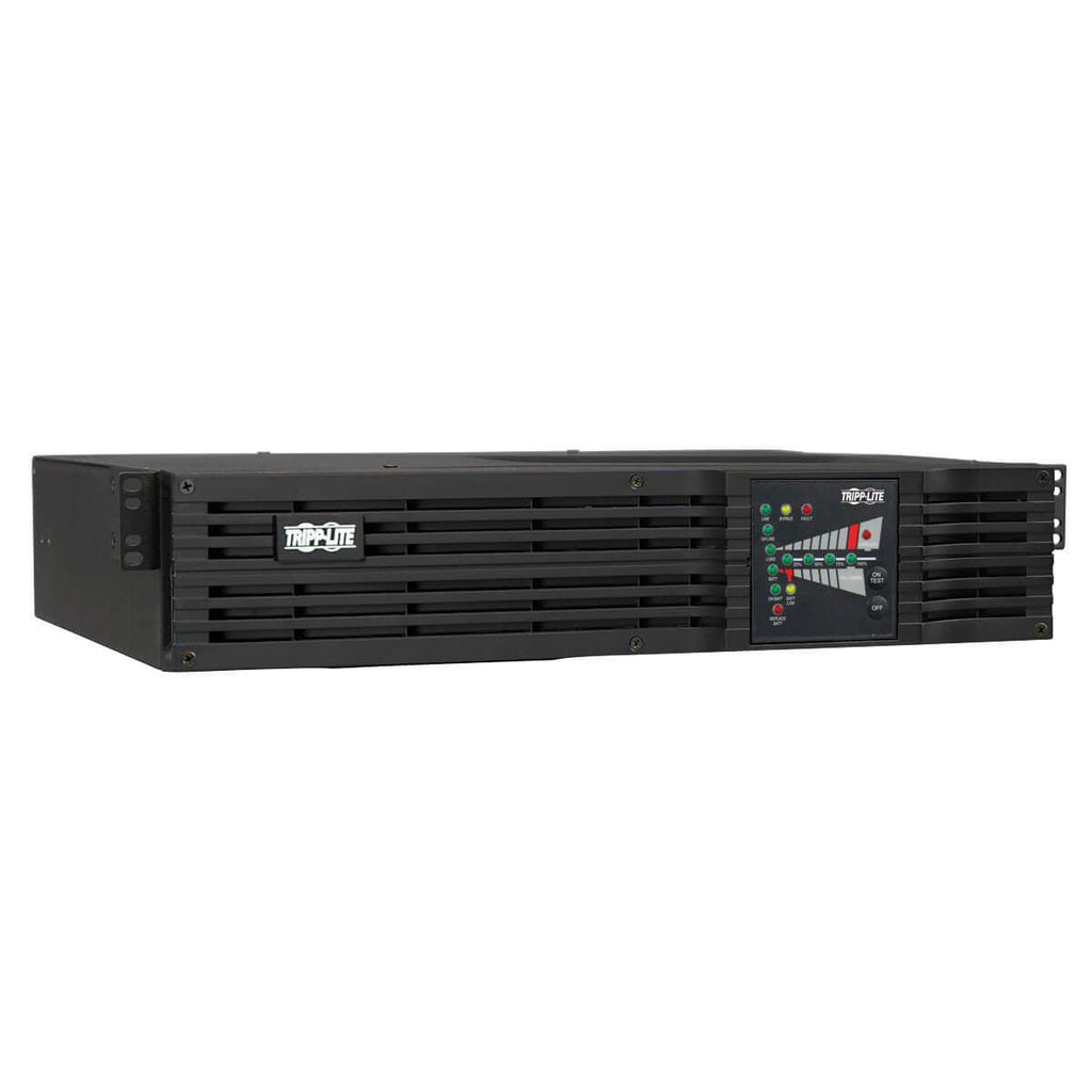 - SmartOnline high-performance UPS system is ideal for critical voice, data, medical and industrial network applications - True online, double-conversion UPS provides perfectly regulated sine wave output within 2% of 100/110/120V (user selectable) under all usage conditions - Maintains continuous operation through blackouts, voltage fluctuations and surges with zero transfer time - Removes harmonic distortion, fast electrical impulses, frequency variations and other hard-to-solve power problems not addressed by other UPS types - Corrects line voltage conditions as low as 65V and as high as 150V back to selectable 100/110/120V (+/-2%) values - Standard internal battery set offers 11 min. runtime at half load (300W) and 6 min. at full load (600W) - Extended runtime available with optional BP24V15RT2U (limit 1), BP24V28-2U (limit 1), BP24V70-3U (multi-pack compatible) and BP24V36-2US (multi-pack compatible) external battery packs - Intelligent battery management system extends battery life - Some external battery configurations require the use of Tripp Lite's External Battery Configuration Software (see manual) - Compact rackmount form factor installs using only 2 rack spaces (2U) with a maximum installed depth of only 13.5 inches - Ships with all mounting accessories for 4-post rackmount installation - Optional 2POSTRMKITWM enables 2-post rackmount or wallmount installation - Optional 2-9USTAND accessory enables small-footprint upright tower placement - Fault tolerant electronic bypass maintains utility output during a variety of UPS fault conditions - Network interfaces support simultaneous communications via built-in USB, DB9 serial / contact-closure and pre-installed WEBCARDLX network interface - HID-compliant USB interface enables integration with built-in power management and auto shutdown features of Windows and Mac OS X - USB & Serial ports enable data-saving unattended shutdown when used with Tripp Lite's PowerAlert software, available via FREE download from www.tripplite.com/poweralert - Built-in Emergency Power Off (EPO) interface with cable - NEMA 5-15P input plug/NEMA 5-15R output receptacles - Integrated 2-bank switched PDU enables remote outlet management for load shedding or remote reboot of individual devices (each load bank consists of a single outlet) - Front panel LEDs offer current monitoring and battery charge level information - Single-line tel/DSL or network Ethernet line surge suppression - $250,000 Ultimate Lifetime Insurance (U.S., Canada, and Puerto Rico only)