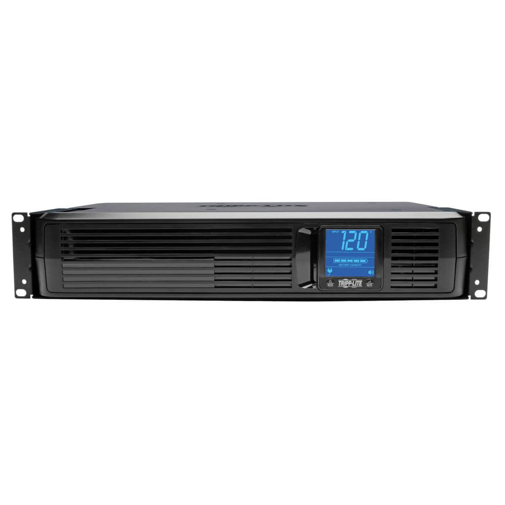 Tripp Lite SmartPro LCD 120V 1.5kVA 900W Line-Interactive UPS, 2U Rack/Tower, LCD Display, USB, DB9 Serial. UPS topology: Line-Interactive, Output power capacity: 1.5 kVA, Output power: 900 W. AC outlet types: NEMA 5–15R, Power plug: NEMA 5-15P, AC outlets quantity: 8 AC outlet(s). Typical backup time at full load: 3.5 min, Typical backup time at half load: 13 min, Battery recharge time: 4.5 h. Form factor: Rackmount/Tower, Product colour: Black, Housing material: Acrylonitrile butadiene styrene (ABS). Width: 438.2 mm, Depth: 266.7 mm, Height: 88.9 mm