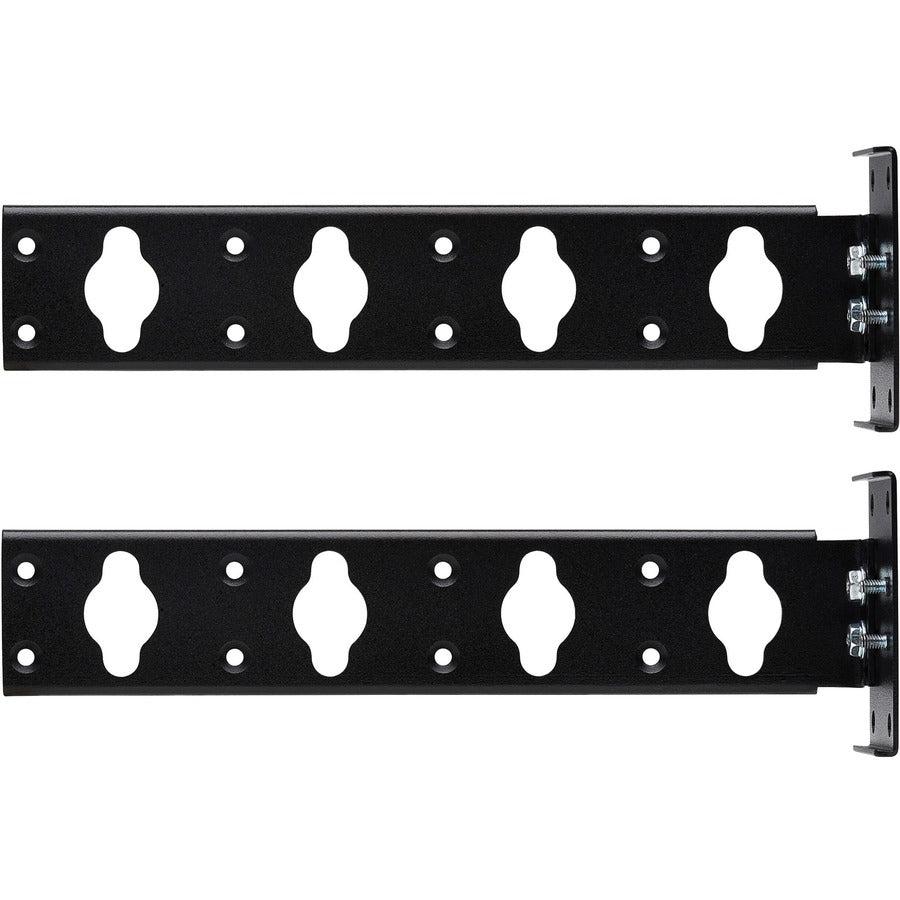 Bracket Enhances Functionality of Enclosures and Open Frame Racks The SRPDU4PHDBRKT allows the addition of up to three vertical PDUs or cable managers to a Tripp Lite rack enclosure or open frame rack, helping you avoid the need to invest in a larger rack configuration. Upper and lower brackets attach to the frame of a standard or heavy-duty rack enclosure using the included screws and cage nuts. Included adapter plates allow connection to mounting rails in 2-post or 4-post open frame racks. Supports Toolless Mounting of Up to 3 Vertical PDUs or Cable Managers Up to three vertical PDUs or cable management accessories can be mounted to the SRPDU4PHDBRKT brackets. Keyhole slots support toolless button mounting. The brackets also have equipment mounting holes for attaching PDUs and cable managers with fasteners.