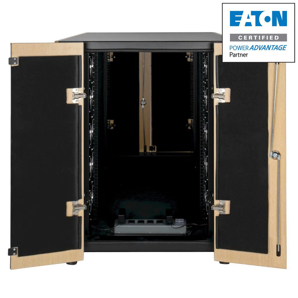 Soundproof server rack enclosure 18U for quiet office environments. Advanced acoustic dampening with data center performance and professional cooling design.