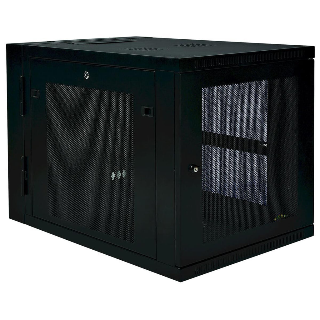 The SRW12US33 SmartRack 12U Server-Depth Wall-Mount Rack Enclosure Cabinet is designed to house EIA-standard 19-inch rack equipment in network wiring closets, retail locations, classrooms, back offices and other areas with limited floor space where you need equipment to be secure, organized and out of the way. Constructed from heavy-duty steel with a durable black powder-coated finish, the cabinet has a maximum load capacity of 250 lbs (113.4 kgs).