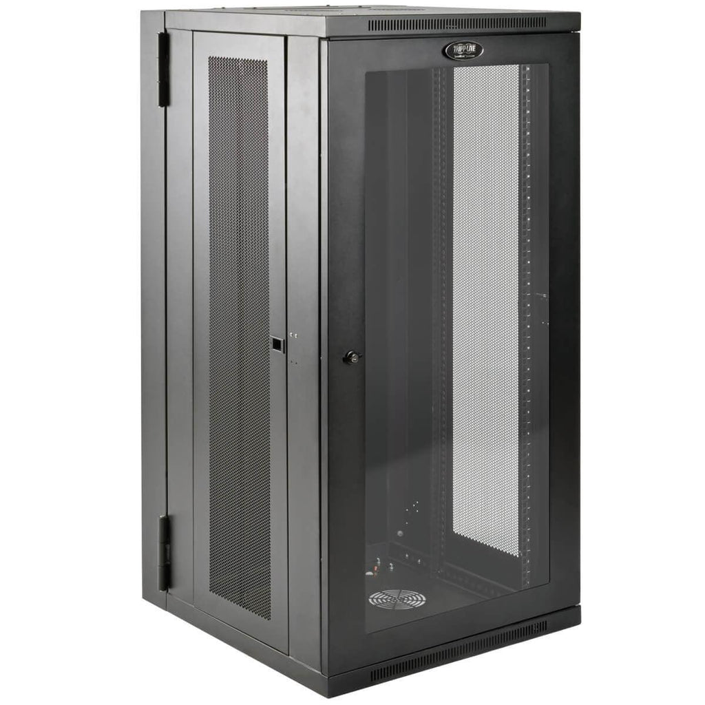 The SRW26USDPG comes fully assembled and ready to mount to the wall, or use Tripp Lite's optional SRCASTER rolling caster kit to make it a mobile rack. Square and 12-24 threaded mounting holes and numbered rack spaces make equipment installation easy. The vertical mounting rails adjust in 7/8-inch increments to accommodate equipment up to 24.5 inches deep, such as network switches, UPS systems and related battery packs and cabling.