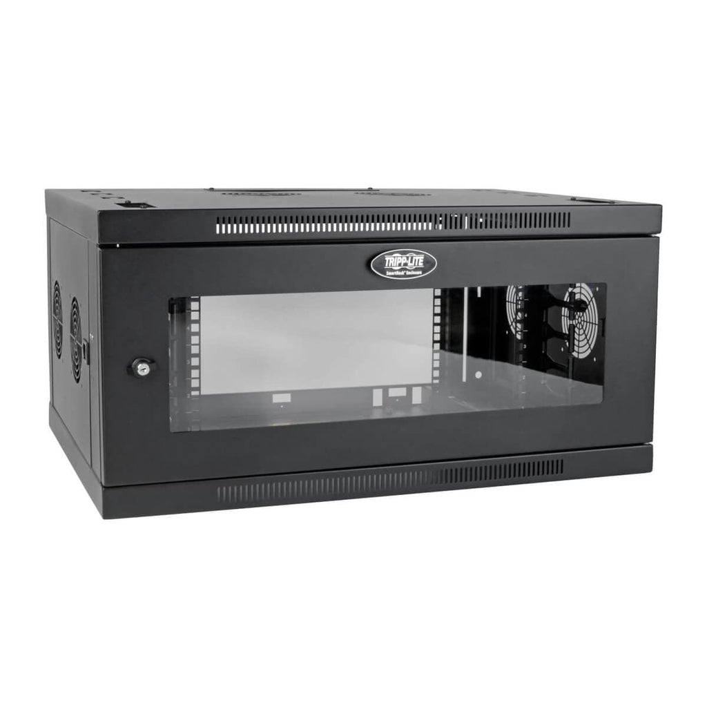 Space-Saving 6U Wall-Mount Enclosure Houses 19 in. Rack Equipment up to 20.5 in. Deep This SmartRack® cabinet is designed to house 6U of equipment, such as network switches and patch panels. It's recommended for network wiring closets, retail locations, classrooms, back offices and other areas with limited floor space where you need equipment to be secure, organized and out of the way. Constructed from heavy-duty steel with a durable black powder-coated finish, the cabinet has a maximum load capacity of 200 lbs (90.7 kgs).