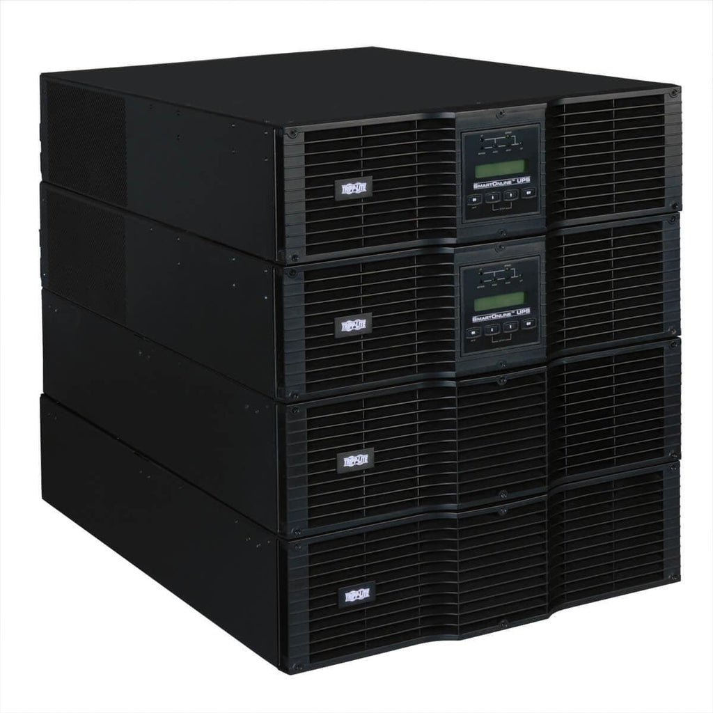 Tripp Lite SU20KRTG 20,000VA / 20kVA / 18,000 watt online, double-conversion UPS system offers complete power protection for critical server, network and telecommunications equipment in a 12U rack/tower configuration. This system delivers complete N+1 redundancy when used at loads up to 10kVA, and non-redundant operation at loads between 10 and 20kVA. Fault-tolerant auto-bypass prevents unexpected service interruptions during UPS overload or internal fault conditions. Included parallel PDU with manual bypass switching enables hot-swappable replacement of all major UPS system components in both N+1 and combined operating modes. Enhanced availability, fault tolerance and simple hot-swap replacement options make this UPS ideal for advanced networking applications in data centers, computer rooms, network closets and rugged industrial locations.