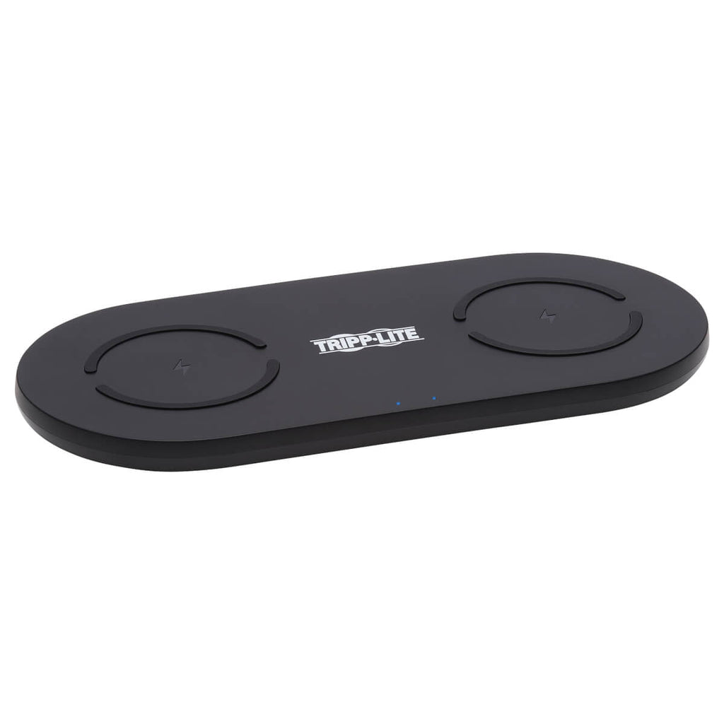 Tripp Lite U280-Q02FL-BK Dual Wireless Charging Pad, Qi-Certified, Black. Charger type: Indoor, Power source type: DC, Charger compatibility: Smartphone, Tablet. Input voltage: 100 - 240 V, Maximum output voltage: 9 V, AC adapter output current: 2.5 A. Wireless charging, Power protection features: Over current, Overcharge, Overheating. Product colour: Black