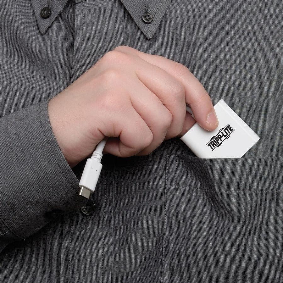 Tripp Lite U444-06N-HD-AM USB-C to HDMI 4K Adapter with Alternate Mode - DP 1.2, White. Maximum resolution (HDMI): 3840 x 2160 pixels. Product colour: White. Package width: 119.9 mm, Package depth: 100.1 mm, Package height: 20.1 mm. Products per master (outer) case: 10 pc(s), Master (outer) case width: 255 mm, Master (outer) case length: 119.9 mm