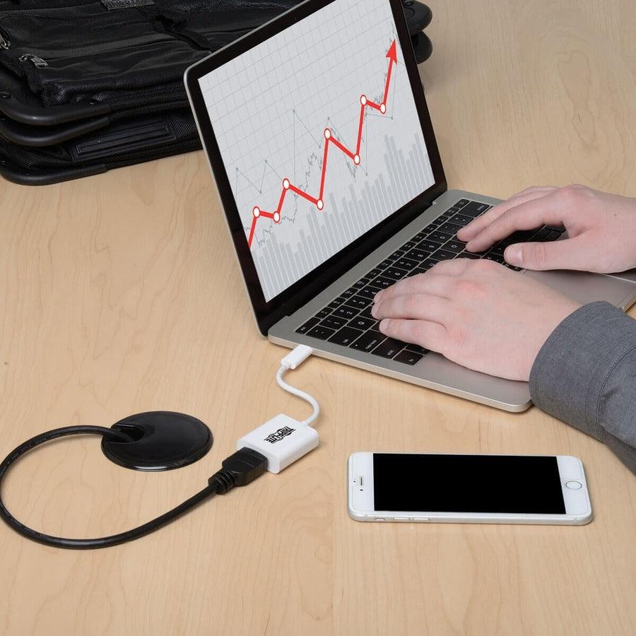 The U444-06N-HD-AM USB 3.1 Gen 1 USB-C to HDMI 4K Adapter (M/F) helps you transmit digital audio and 4K video from your tablet, laptop, Chromebook, MacBook, smartphone or PC to an HDMI-enabled television, monitor or projector. It’s an ideal tool for giving video presentations in conference rooms and classrooms, editing multiple documents on a larger screen or streaming video for digital signage in crystal-clear 4K.