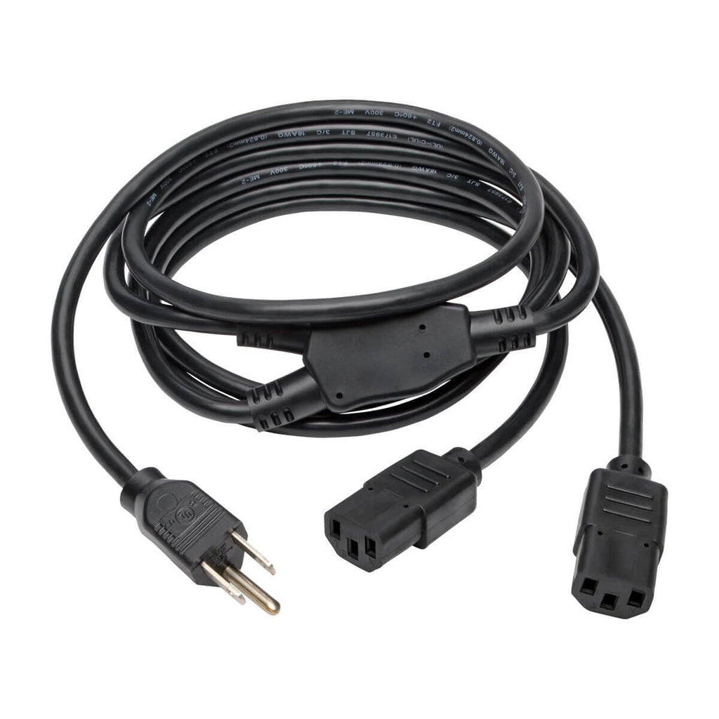 Universal Power Extension Cord Y Splitter Cable (NEMA 5-15P to 2x IEC-320-C13), 6-ft.
