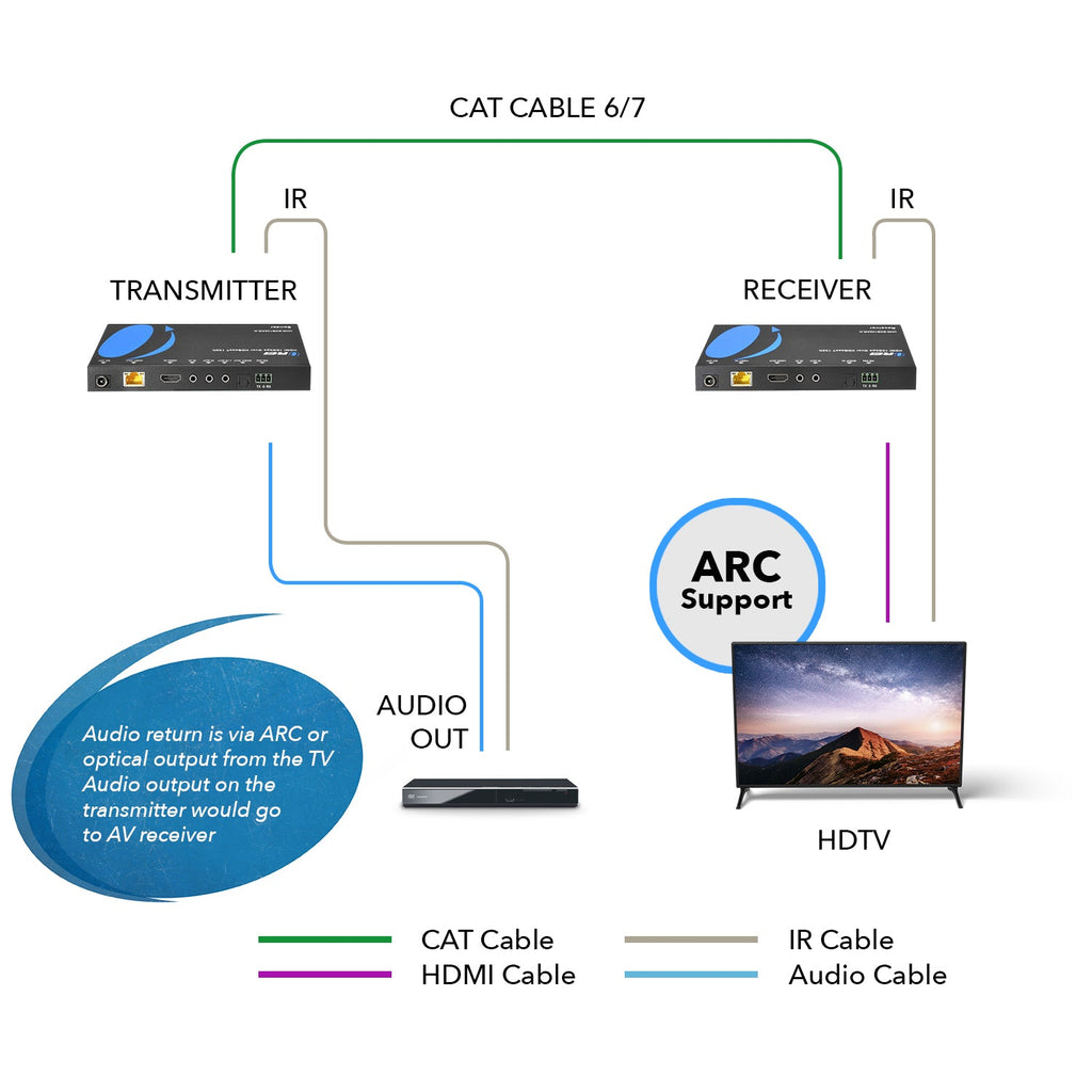4K HDMI Extender Over Ethernet With Audio Extraction up to 165 feet - With Bi-directional IR, RS-232, CEC and Power Over Cable: