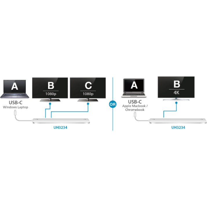 This versatile dock allows to extend your MacBook or Chromebook to an additional monitor and enjoy an ultra high-definition visual experience. You can also mirror or extend your Windows USB-C laptop to two monitors and improve your productivity and get more things done.