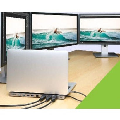 The Dock Pro™ USB-C Triple HD Dock with Power Delivery 3.0 triple video monitor functionality offers astonishing video quality that provides a greater level of productivity for work from home professionals or office workstation whether working and creating from your office, watching videos or playing games. Add up to one 4K or up to three HD monitors via the two HDMI ports and DisplayPort port for a ultra-productive workstation.