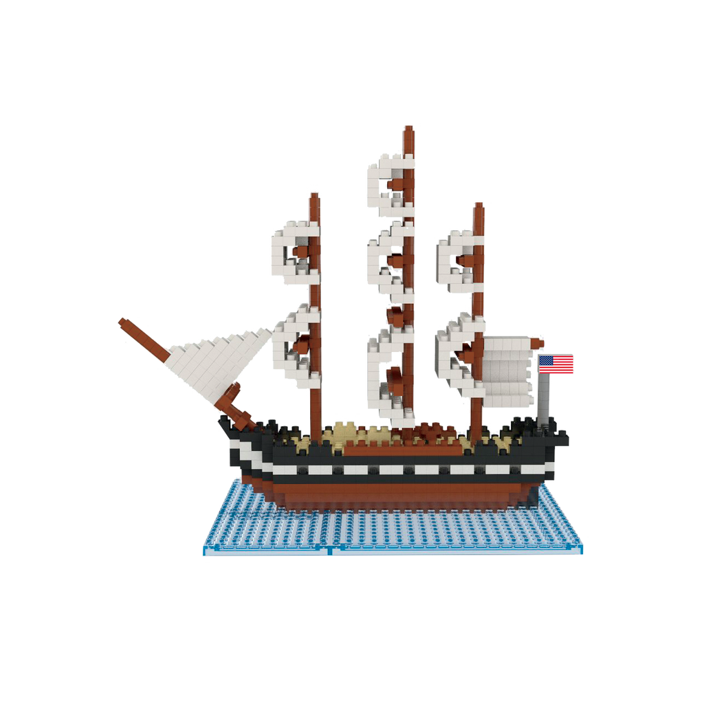 Set sail on a journey through history with the Mini Building Blocks U.S.S. Constitution "Old Ironsides" set! This captivating kit includes 347 pieces, perfect for builders aged 7 and up. The completed model stands just over 4 inches tall and extends almost 5 inches in length, capturing the majestic detail of the famed U.S.S. Constitution, one of the oldest commissioned warships afloat.