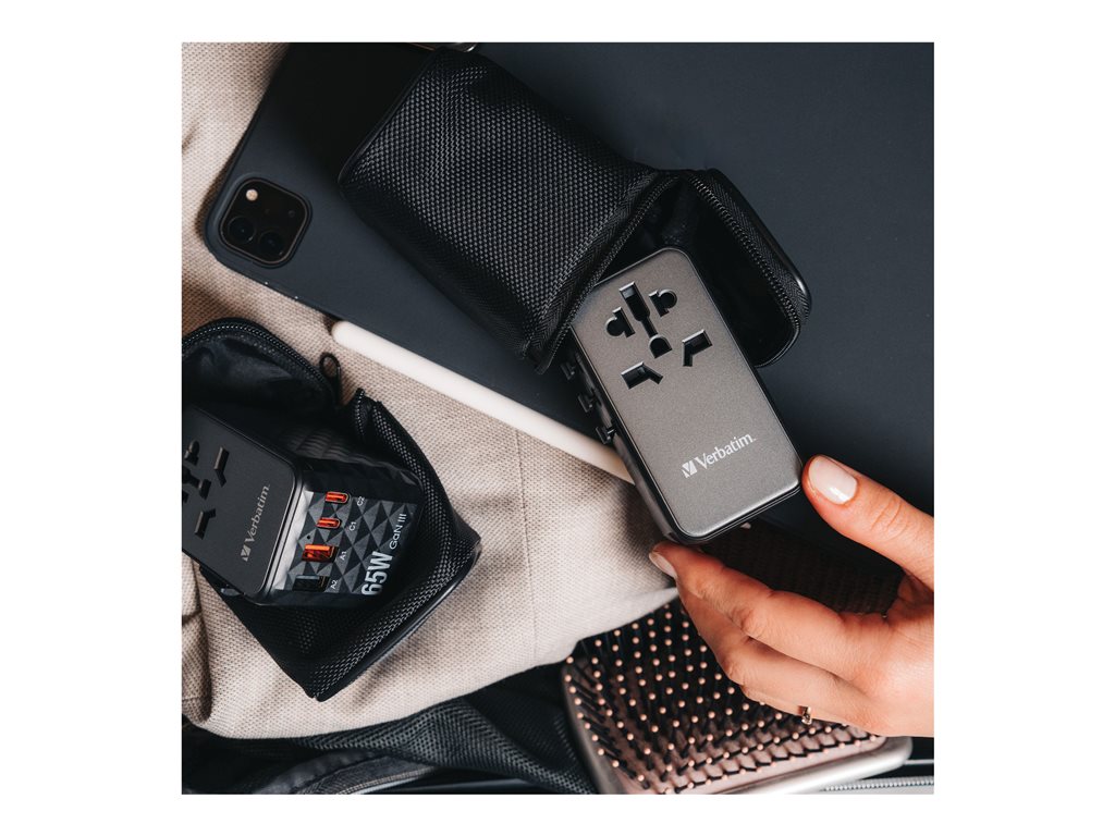 Verbatim UTA-05 - Power adapter - GaN III, universal - 65 Watt - 5 A - PD 3.0, QC 4+, QC 3.0, Fast Charge, Super Charge, Apple Fast Charge, PD/PPS, BC 1.2 - 4 output connectors (2 x USB-C, 2 x USB) - black