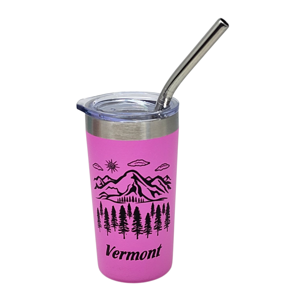This sleek 2 oz stainless steel shooter is a perfect blend of style and functionality, designed to elevate your drinking experience. Its vibrant Pink exterior features a minimalist black silhouette of a Mountain scene, capturing the essence of Vermont’s natural beauty. The graphic design adds a touch of wilderness charm, making it an ideal keepsake for nature lovers and those with an affinity for the Green Mountain State.