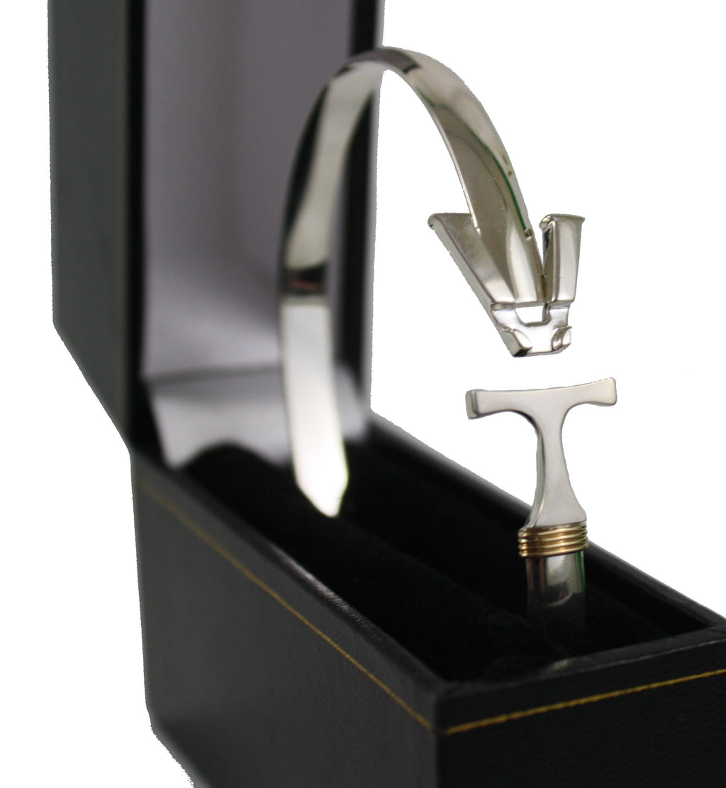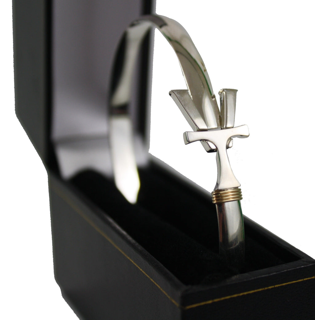- Bracelet dimensions: 6mm wide solid sterling silver band with four elegant 14K gold wraps.