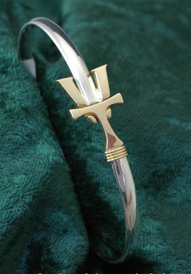 Celebrate the beauty and uniqueness of Vermont with our exquisite Vermont Hook Bracelet! Designed by local artisan Carol L. Rose this stunning piece combines elegance with a heartfelt tribute to the Green Mountain State. The bracelet features a sleek sterling silver band measuring 4mm wide enhanced by 4 eloquent 14K gold wraps that evoke the four distinct seasons Vermont is known for. With the initials "VT" elegantly intertwined as part of the design it serves as a shimmering reminder of the majestic landscapes and the vibrant changes that each season brings.