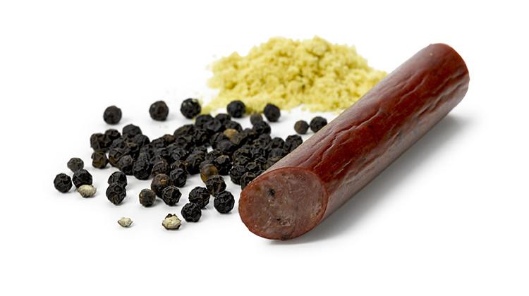 - Flavorful blend of beef and pork enhanced with cracked pepper, garlic, and mustard seed