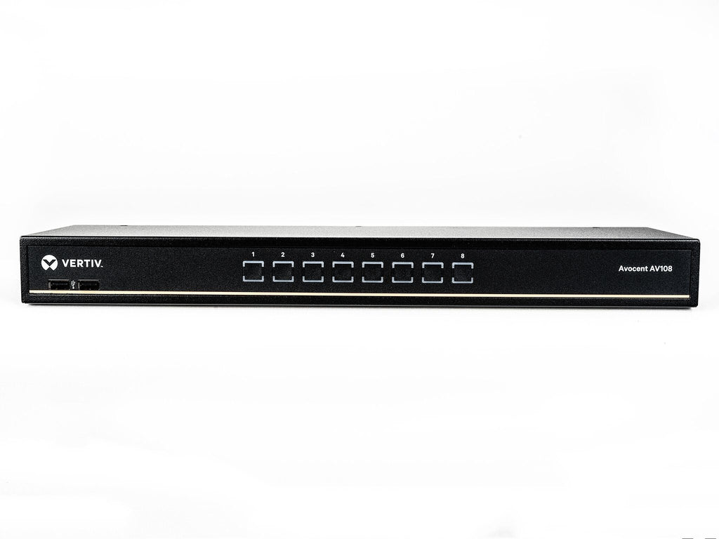 Avocent AV108 KVM switch offers simplified local access, management and control of up to 8 targets from a single console. This single user, smaller form factor KVM switch is designed specifically for IT rooms, small Data Centers and Branch Offices.