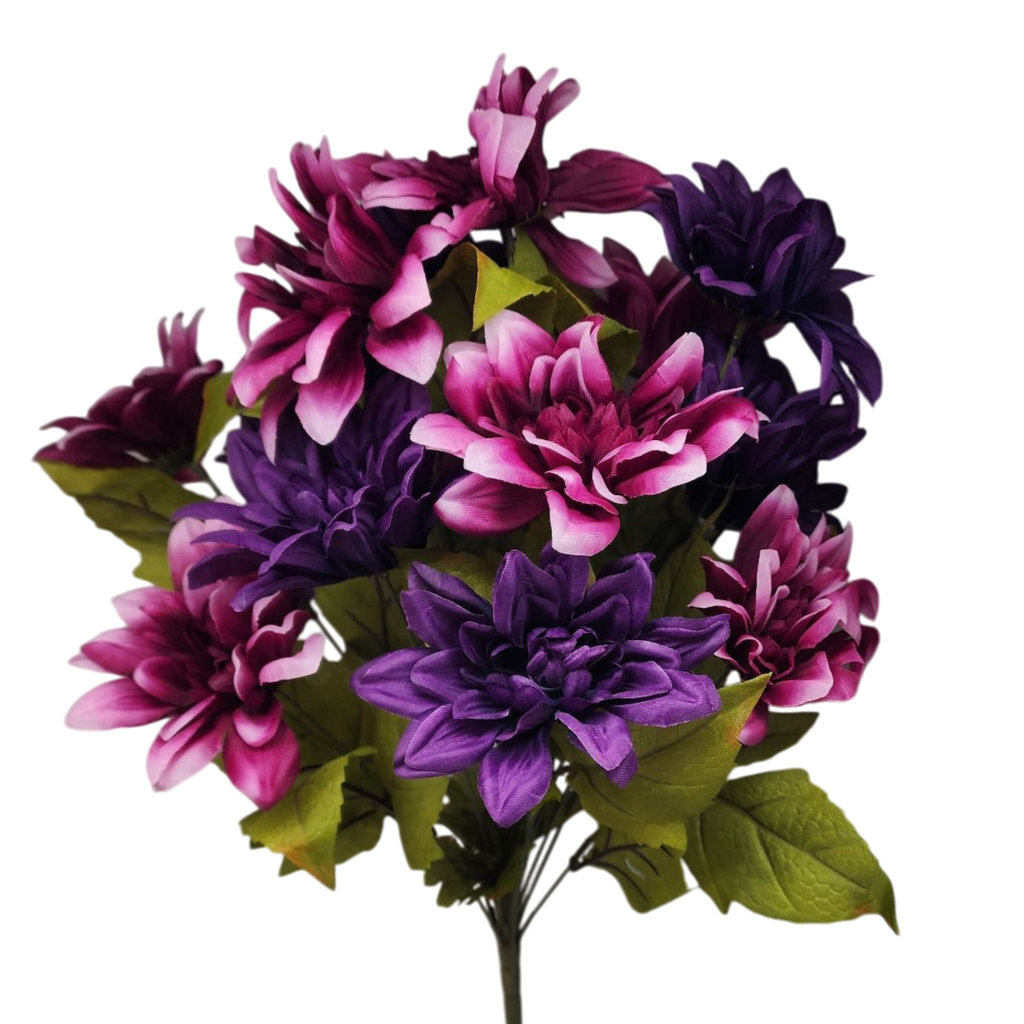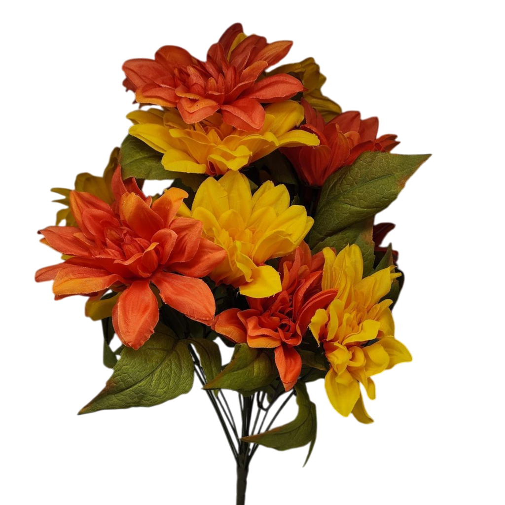 Brighten your space with our stunning Vibrant Dahlia Floral Arrangement! Each beautiful bouquet features a rich assortment of colors, bringing a lively charm to your decor. Measuring just over 21 inches tall and 12 inches wide, this arrangement showcases 16 exquisite flower heads and 4 lush leaves, creating a full and flourishing appearance that's perfect for any room in your home.