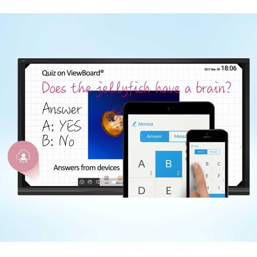 Featuring 4K Ultra HD resolution and an immersive 20-point touch screen, the ViewSonic ViewBoard IFP7550 delivers incredible collaborative capabilities for 21st century boardrooms and classrooms. With astonishing 20-point simultaneous touch capabilities and pre-installed ViewSonic vBoard annotation software, this 75” interactive flat panel lets multiple users write or draw on the screen with their fingers and styluses. With a built-in quad-core processor, as well as versatile connectivity options including multiple HDMI, VGA, RS232, RJ45, and USB ports, this display provides powerful computing for annotation and multimedia playback without the need for a PC. This Energy Star certified display delivers optional slot-in PC capability, as well as future-proof Intel SDM capability, for more computing-intensive interactive applications. The IFP7550 features a VESA-compatible design and can be placed on a wall mount, or on an optional trolley cart for flexible installation in classrooms and corporate meeting rooms.