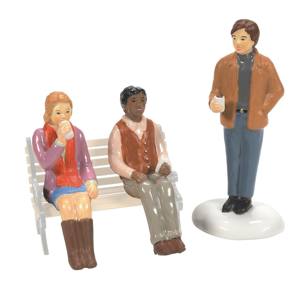 This set of three accessories shows two seated and one standing figure, all doing what today's Village Hipsters do -- drink coffee! The seated figures will go perfectly on any of the Department 56 park benches (sold separately).