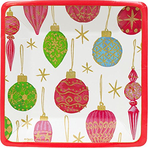 Entertaining with Caspari Salad and Dessert Plates, Vintage Ornaments, Pearl, Square. Our luxury paper goods are available in a wide range of colors and patterns for all seasons and occasions. These paper dinner plates are extra-sturdy, shaped to resemble fine china and made in the USA.