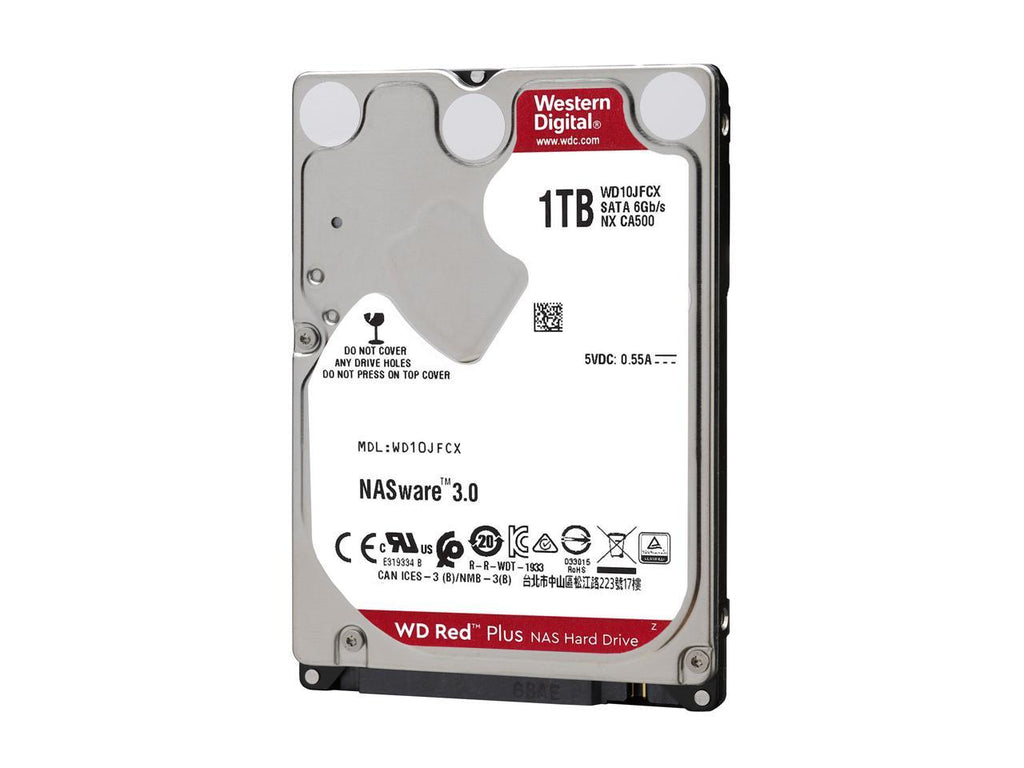 NAS hard drive 1TB for network storage. WD Red Plus with CMR technology and 3-year warranty for reliable 24/7 operation.
