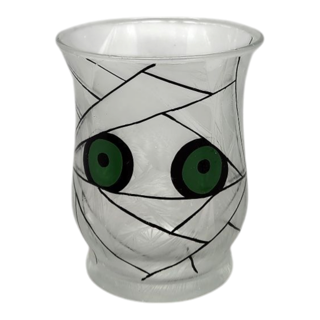 Mummy Magic - Adorned with a fun mummy face and wrapped in bandages, this holder adds a dash of frightful fun to any Halloween display while casting a warm glow.