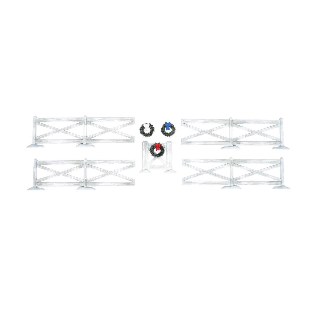 The White Crossbuck Fence Set also includes three festive sisal wreaths adorned in vibrant colors, allowing you to customize the look and feel of your village based on your seasonal themes. Whether you're incorporating it into a bustling snow-covered landscape or a cozy Christmas gathering, this versatile fence set is sure to become a beloved addition to your holiday decor or model railway scenery. Bring your festive scenes to life with this charming and whimsical fence set!