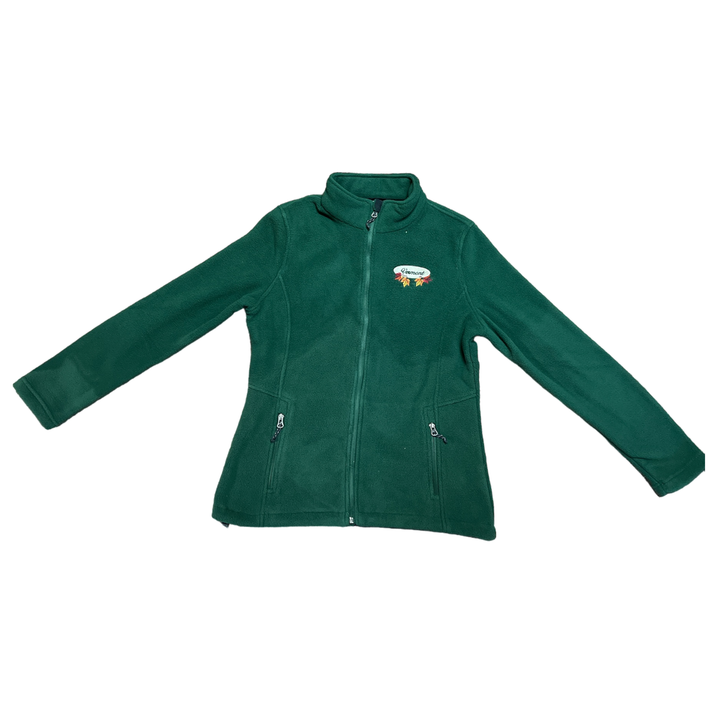 Stay warm and stylish this season with the women’s full-zip fleece jacket adorned with a charming white fall leaves oval embroidery, meticulously crafted right in Vermont. Made from a cozy 13.8-ounce, 100% polyester fabric, this jacket is designed to provide both warmth and comfort during your everyday excursions. The rich forest green hue and delicate embroidered autumn leaves capture the beauty of Vermont's signature fall foliage.