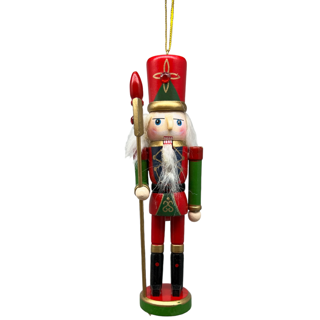 Add a touch of traditional holiday charm to your decor with our exquisitely crafted Wooden Nutcracker Ornament. Standing tall at 6 inches in his vibrant uniform, complete with a striking red hat, regal green and red attire, this classic nutcracker is a delightful nod to the timeless figures that have come to symbolize Christmas cheer. With his hand on a wooden axe and a look of determination, this ornament encapsulates the spirit and bravery of the Nutcracker Prince from Tchaikovsky's beloved ballet, "The Nutcracker."