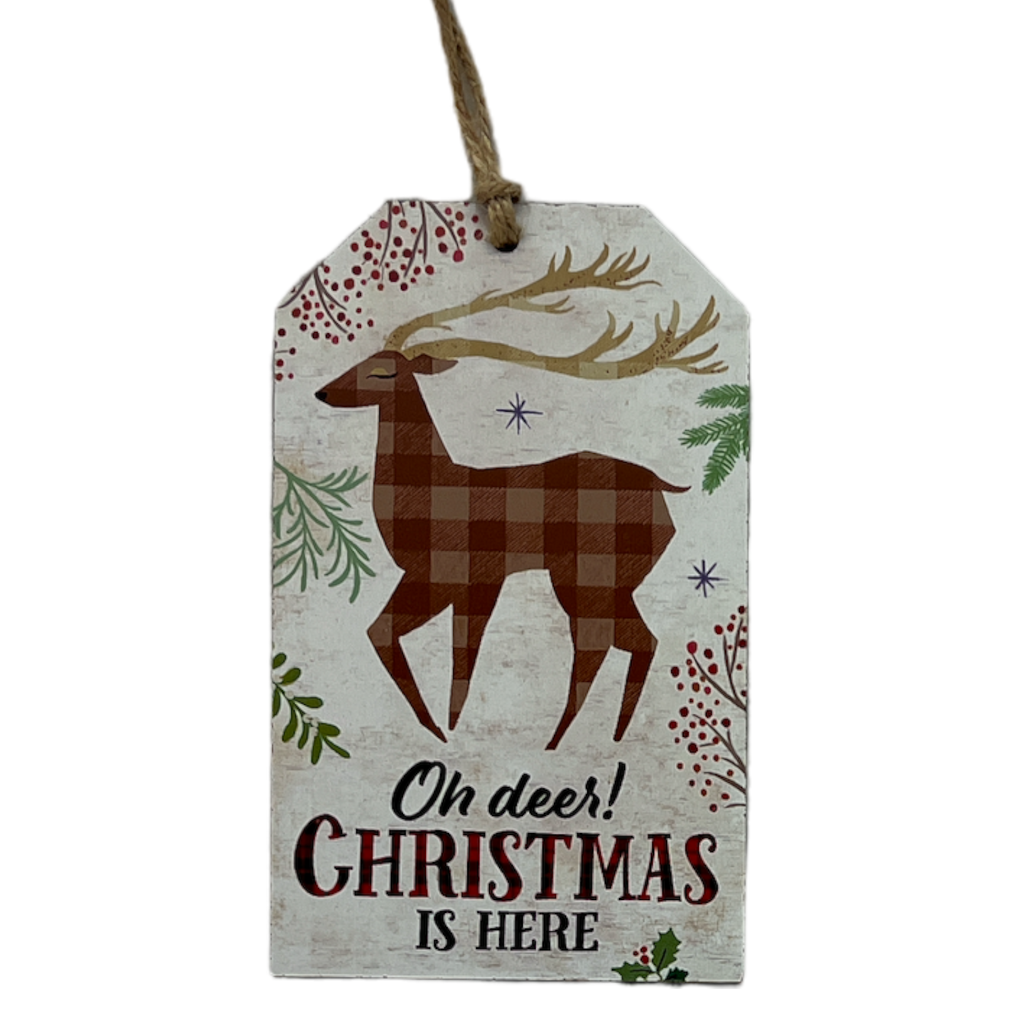 Wooden Plaid Gift Tag Ornament - Oh Deer! Christmas Is Here