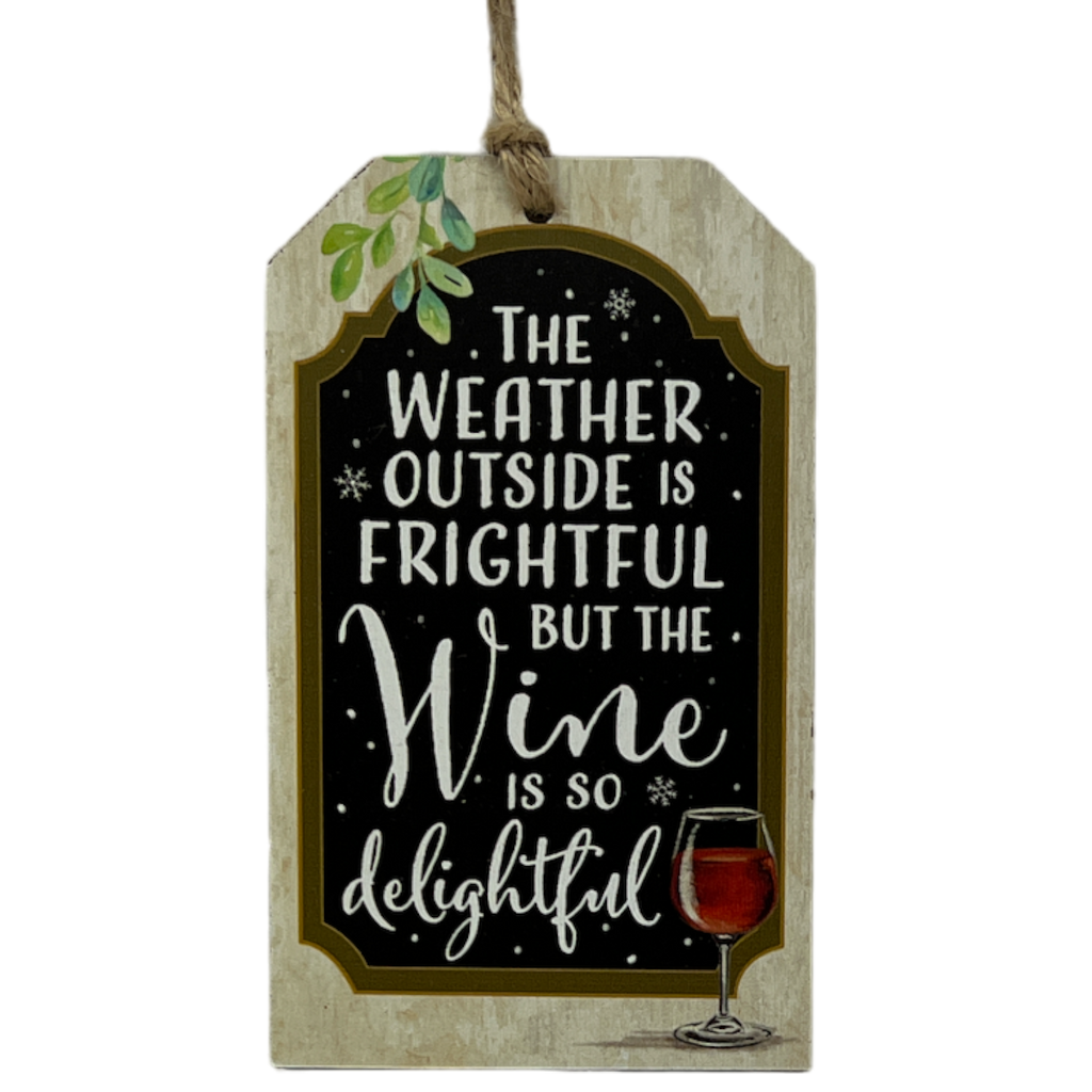 Wooden Plaid Gift Tag Ornament - The Wine Is So Delightful