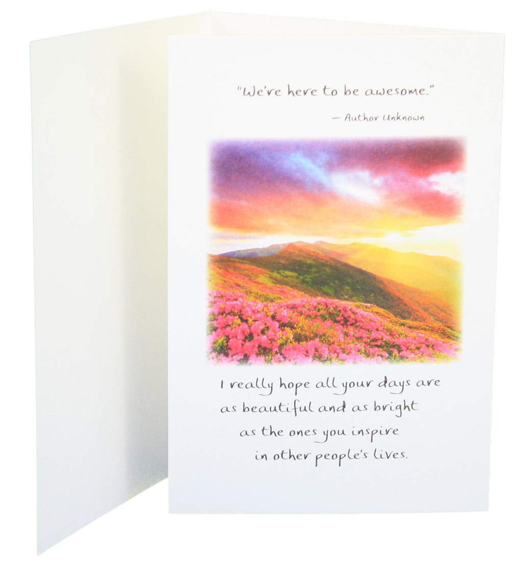Inside Message: "We're here to be awesome." - Author Unknown I really hope all your days are as beautiful and as bright as the ones you inspire in other people's lives.