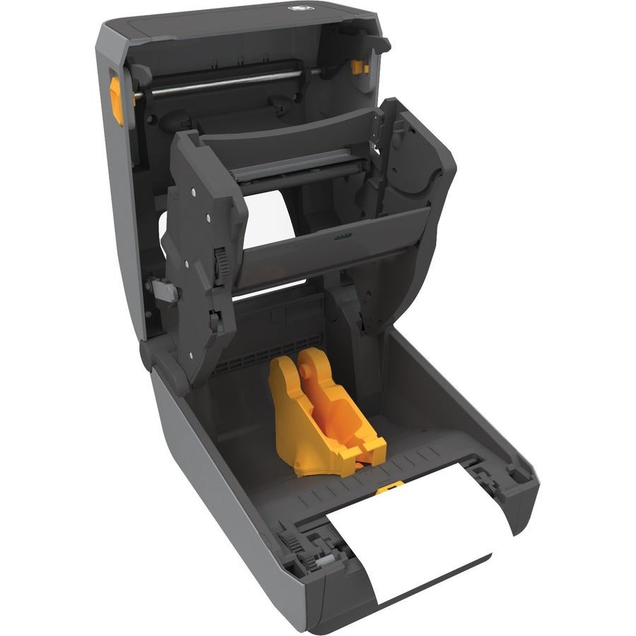 A: The ZD421 combines 300 dpi print resolution with thermal transfer technology, ensuring crisp, scannable barcodes that meet industry standards for retail and inventory management.